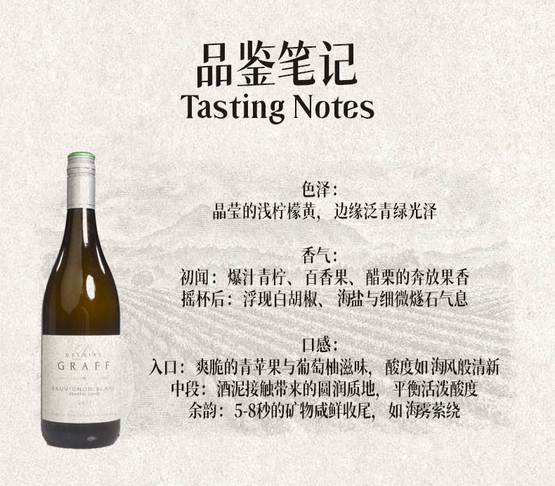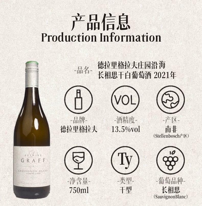 德拉里格拉夫庄园沿海长相思干白葡萄酒南非进口庄园送礼佳品聚会