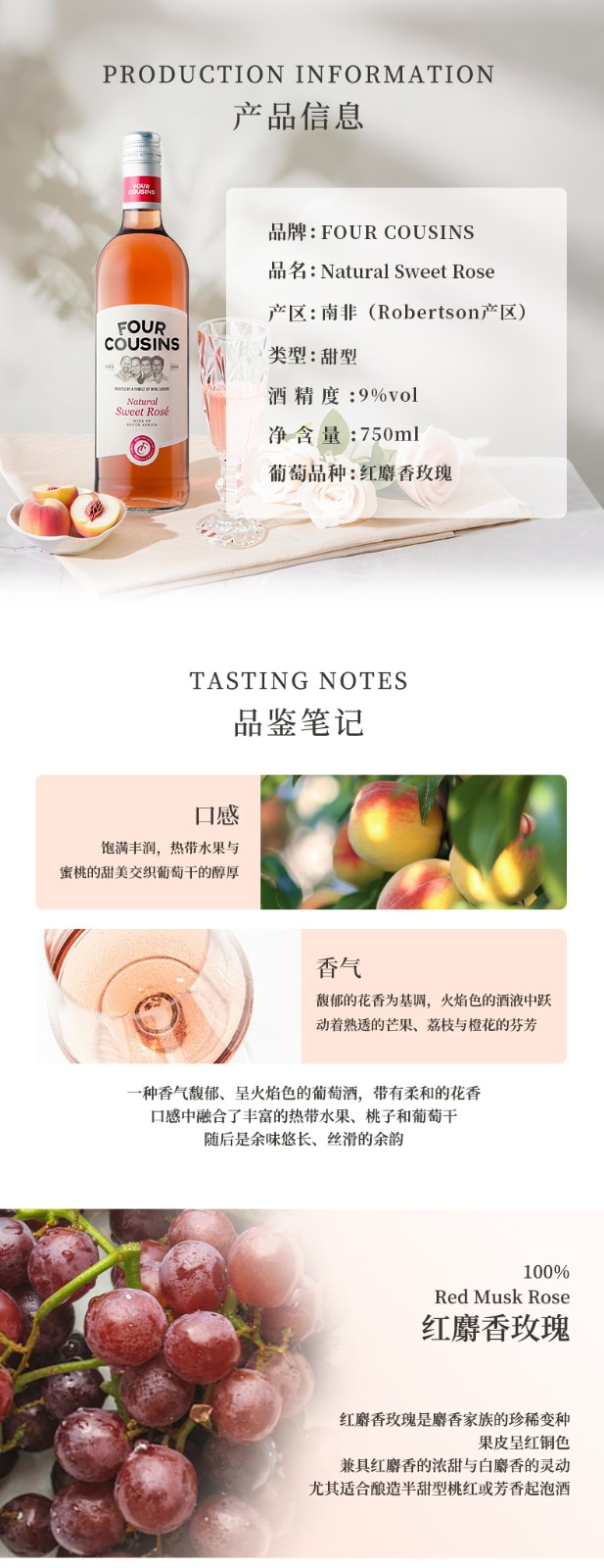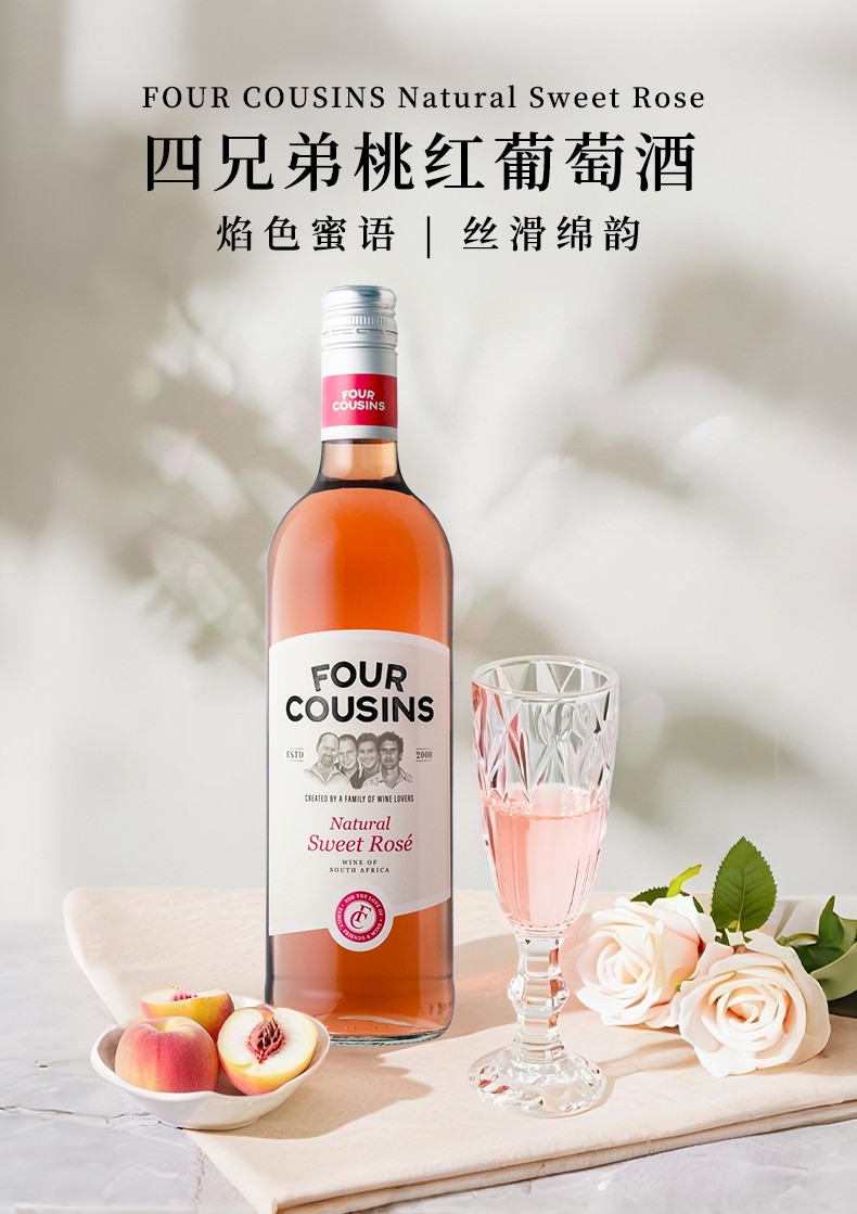 Four Cousins Natural Sweet Rose四兄弟桃红葡萄酒750ml送礼必备桃红葡萄酒餐前酒送人送礼