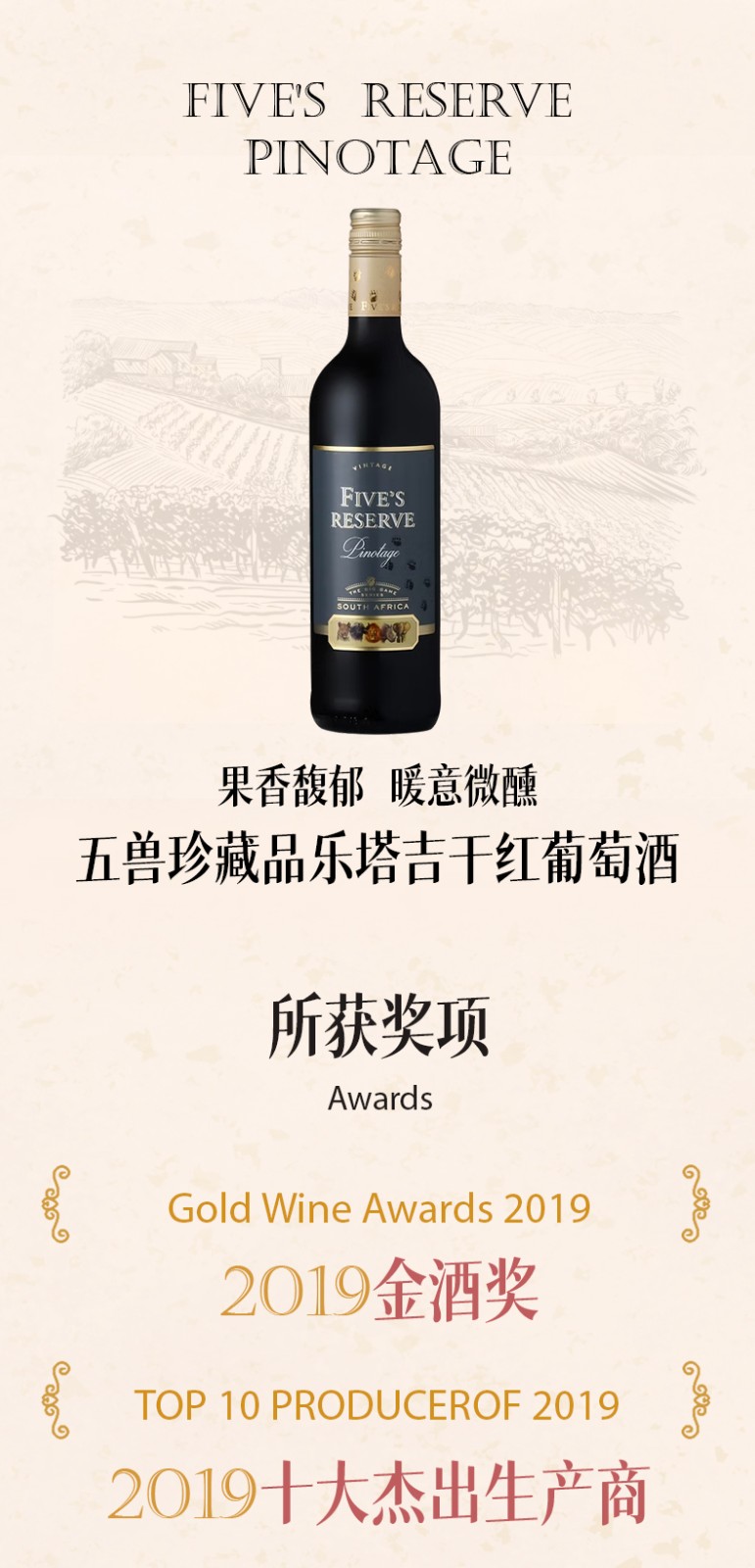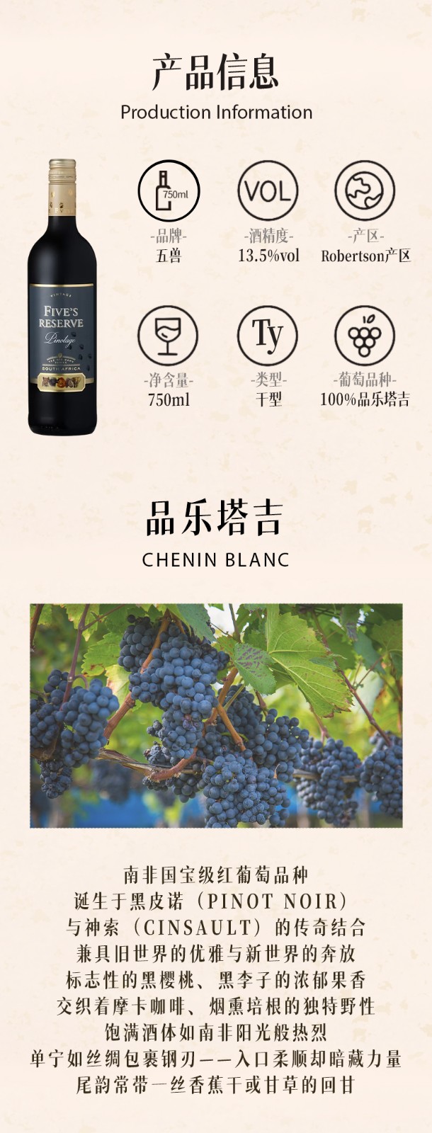 南非进口五兽珍藏品乐塔吉干红葡萄酒750ml干红葡萄酒原装原瓶进口