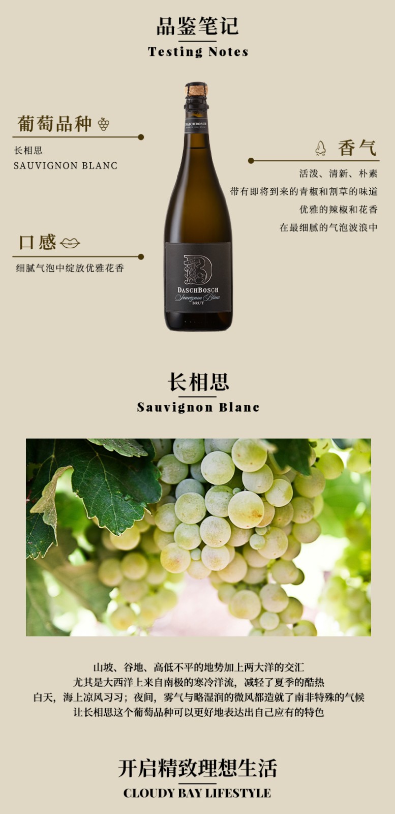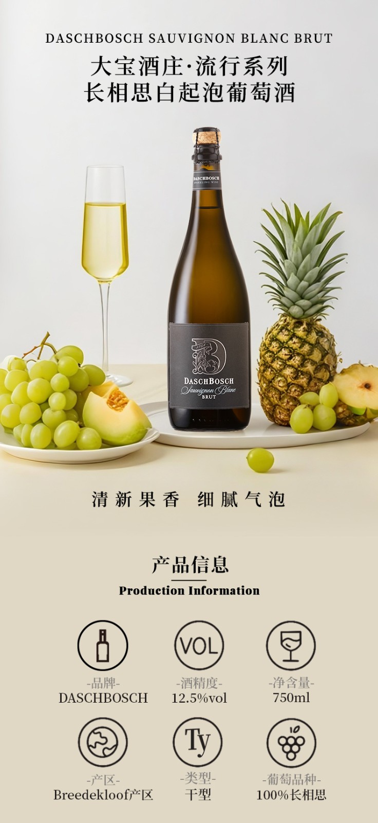 南非进口大宝酒庄·流行系列长相思白起泡葡萄酒750ml起泡酒聚会葡萄酒