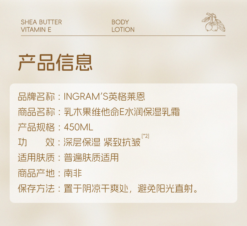 INGRAM'S英格莱恩经典香樟乳霜保湿修护肌肤紧致手足部面霜足霜450ml