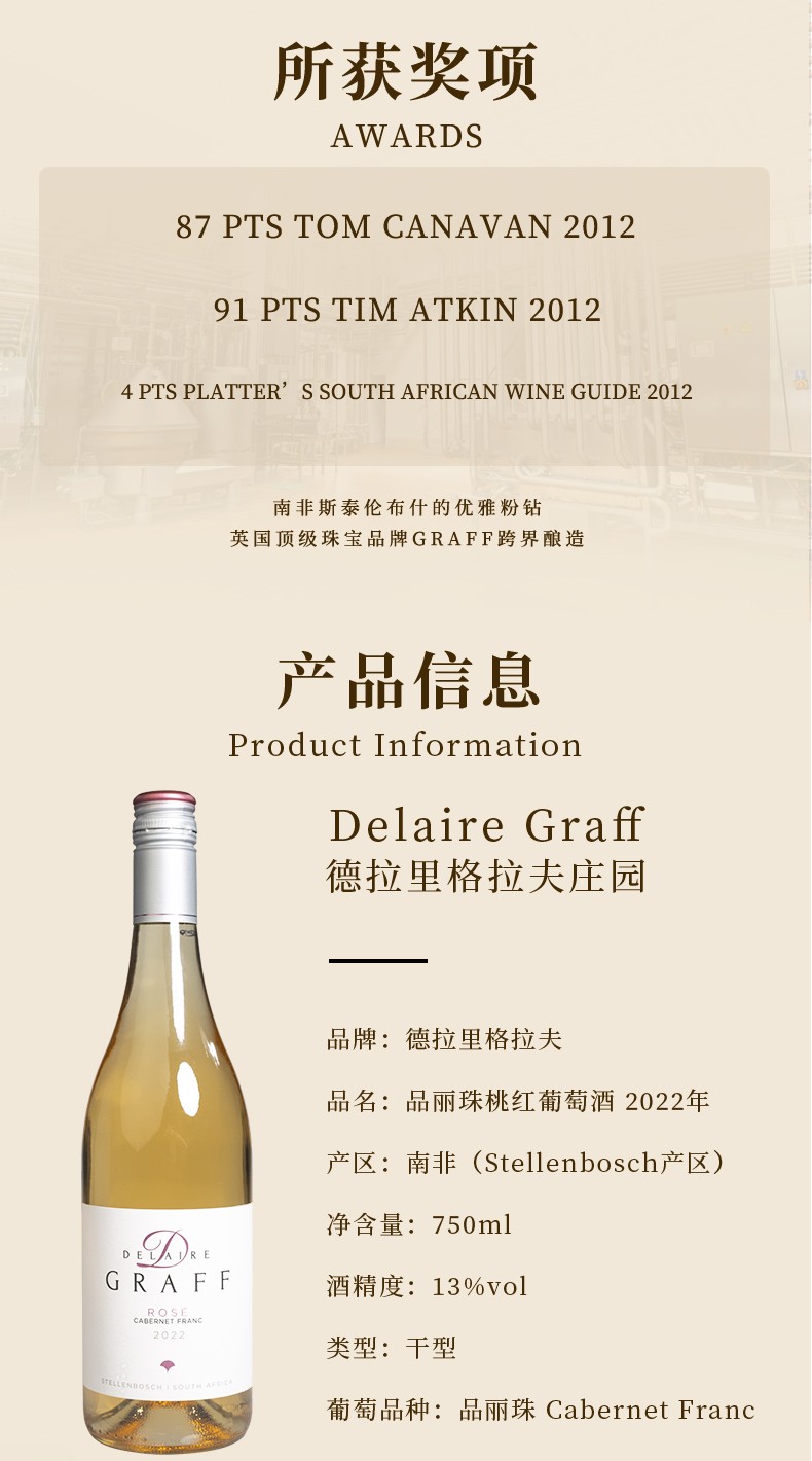 德拉里格拉夫庄园品丽珠桃红葡萄酒桃红酒纪念日浪漫南非原瓶进口