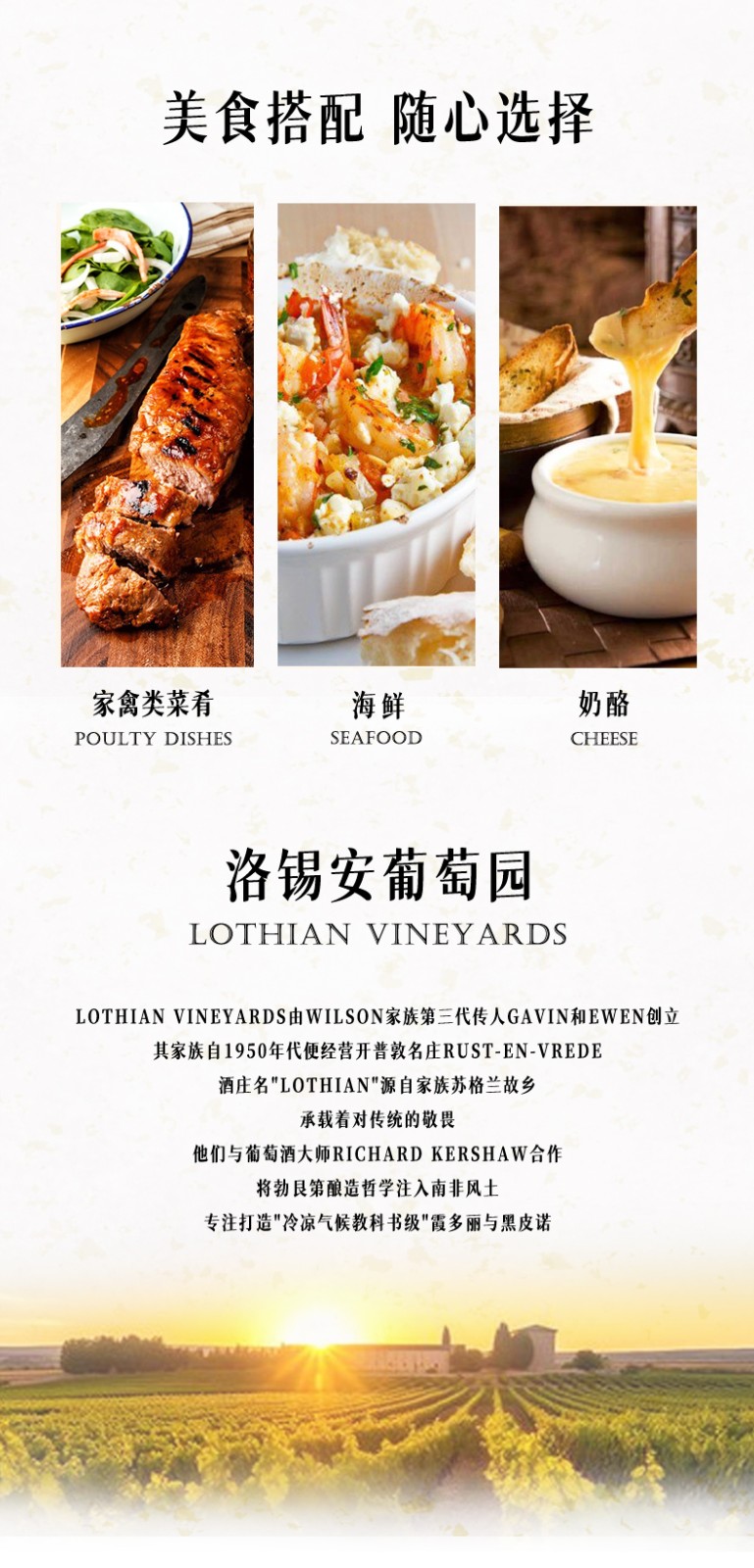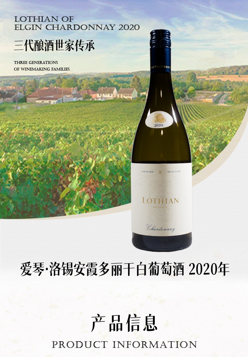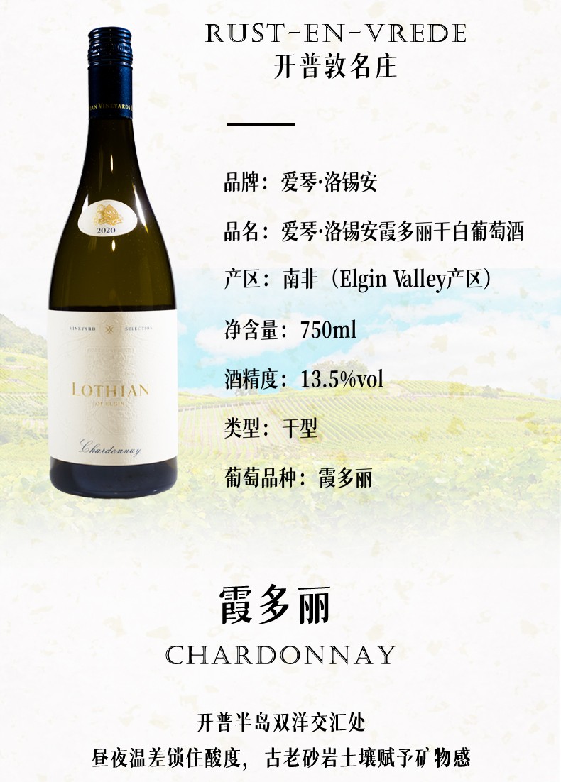 爱琴·洛锡安霞多丽干白葡萄酒甜型女士微醺小甜南非原瓶进口聚会