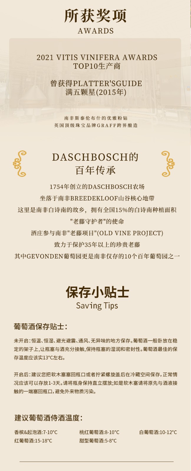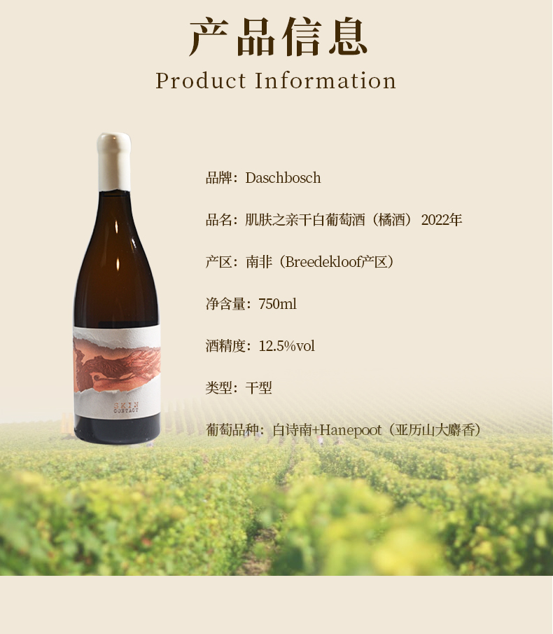 南非原装进口Daschbosch大宝肌肤之亲干白葡萄酒(橘酒)聚餐烧烤