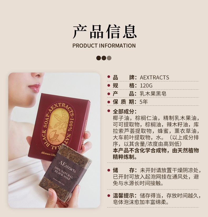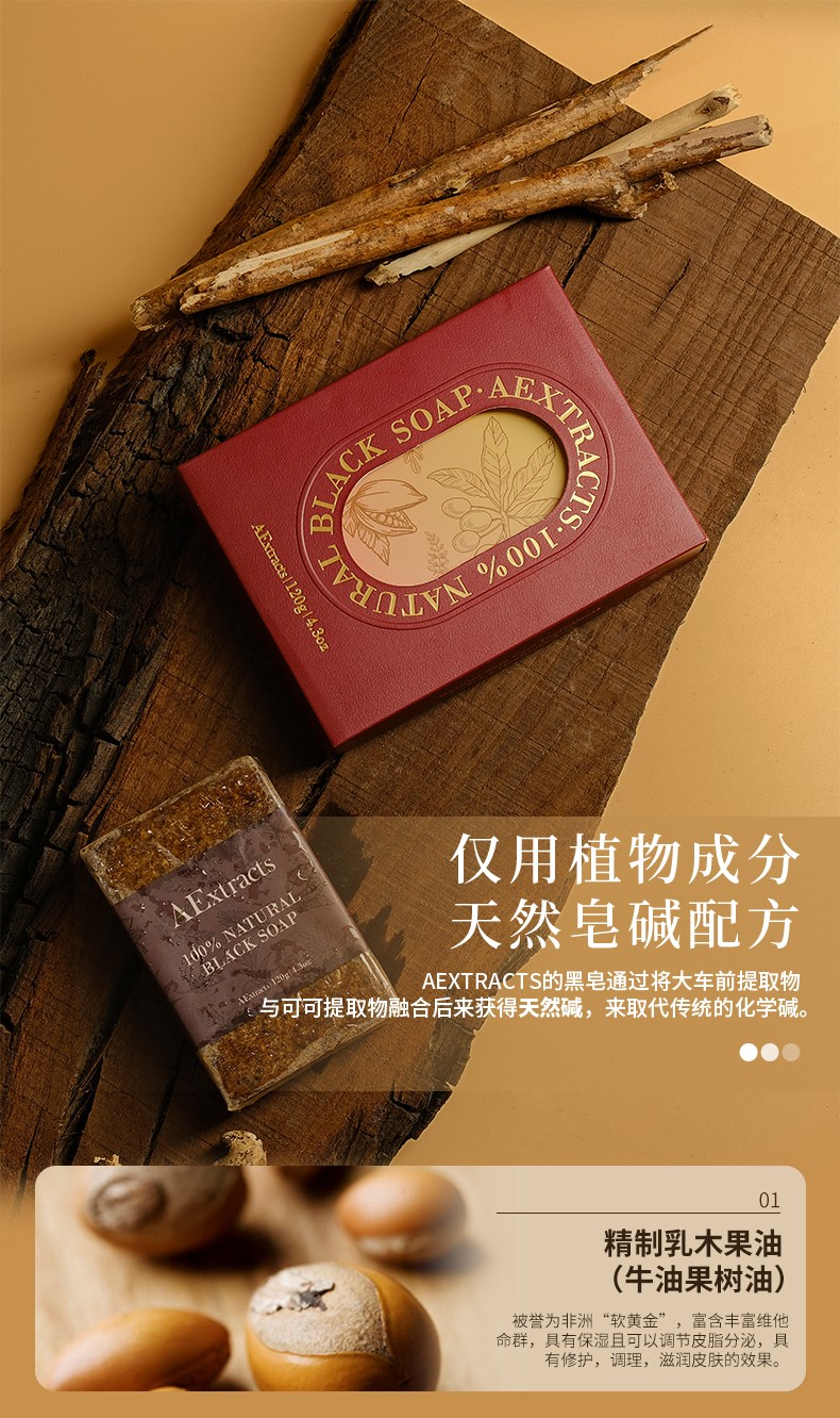 AExtracts非洲加纳黑钻天然手工瑰宝皂洗卸二合一0添加安心用肥皂